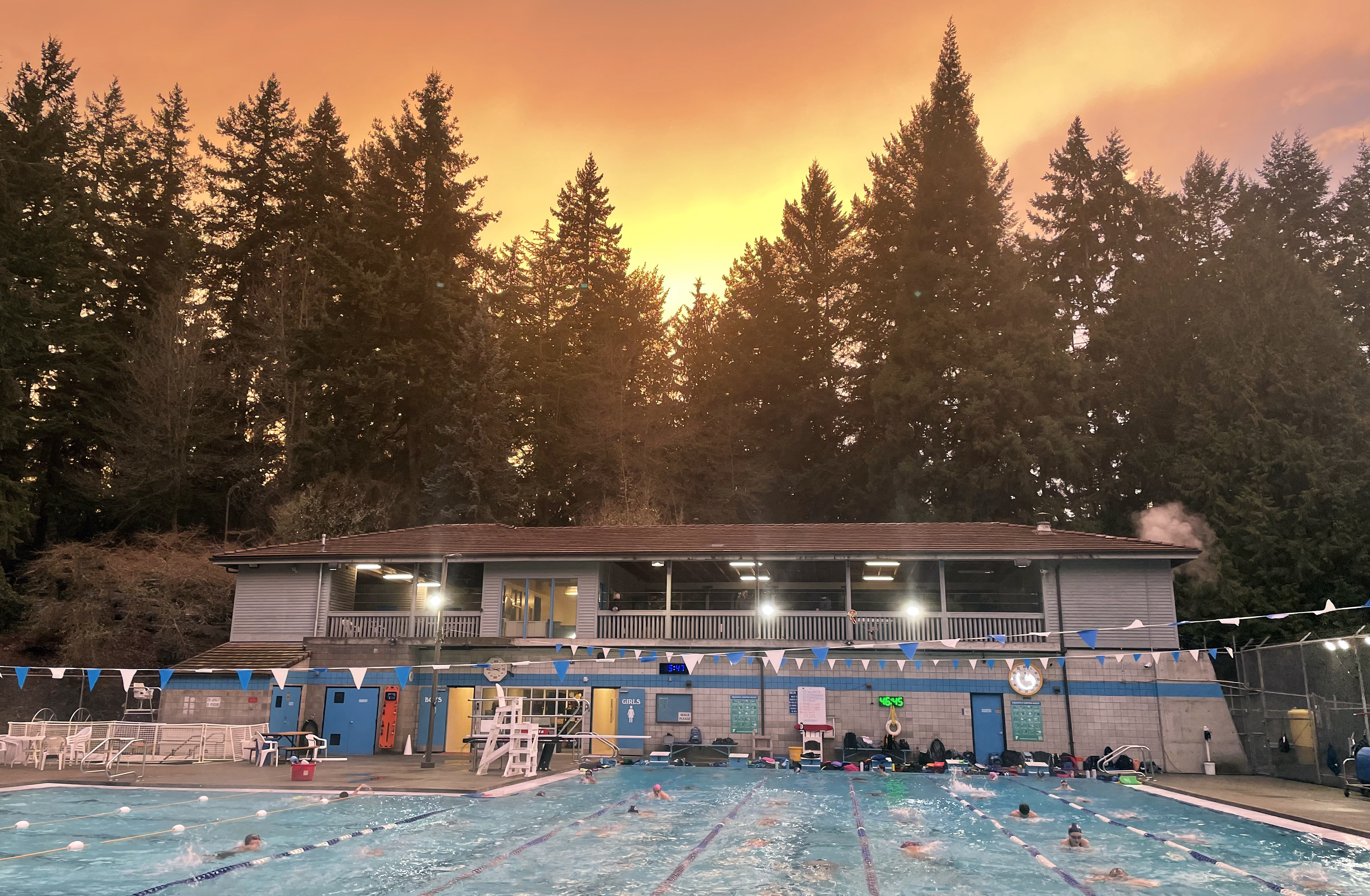 Construction began in 1968 and finished in 1971. With a major remodel in the 80s that added the roof to the main building. Originally, this site was an old gravel pit. It was run by the City of Edmonds from 1971-2005. Under threat of closure from the 2008 financial crisis, citizens raised $100,000 to keep the pool open. After that, the YMCA took over pool operations from 2008-2019. In 2019, the pool transitioned to a parnership between the City of Edmonds and Cascade Swim Club.