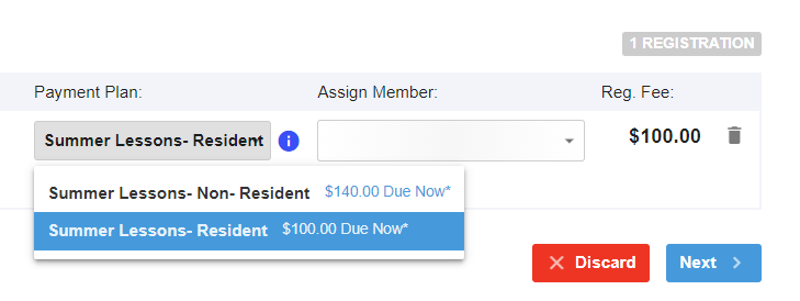 Please note that you must change your payment plan manually when registering. Click on the payment plan box and select resident pricing from the drop down, it is unable to do this automatically. Once you do this the system will verify that your address is in Edmonds. We apologize for any inconvenience. See Below as an example.